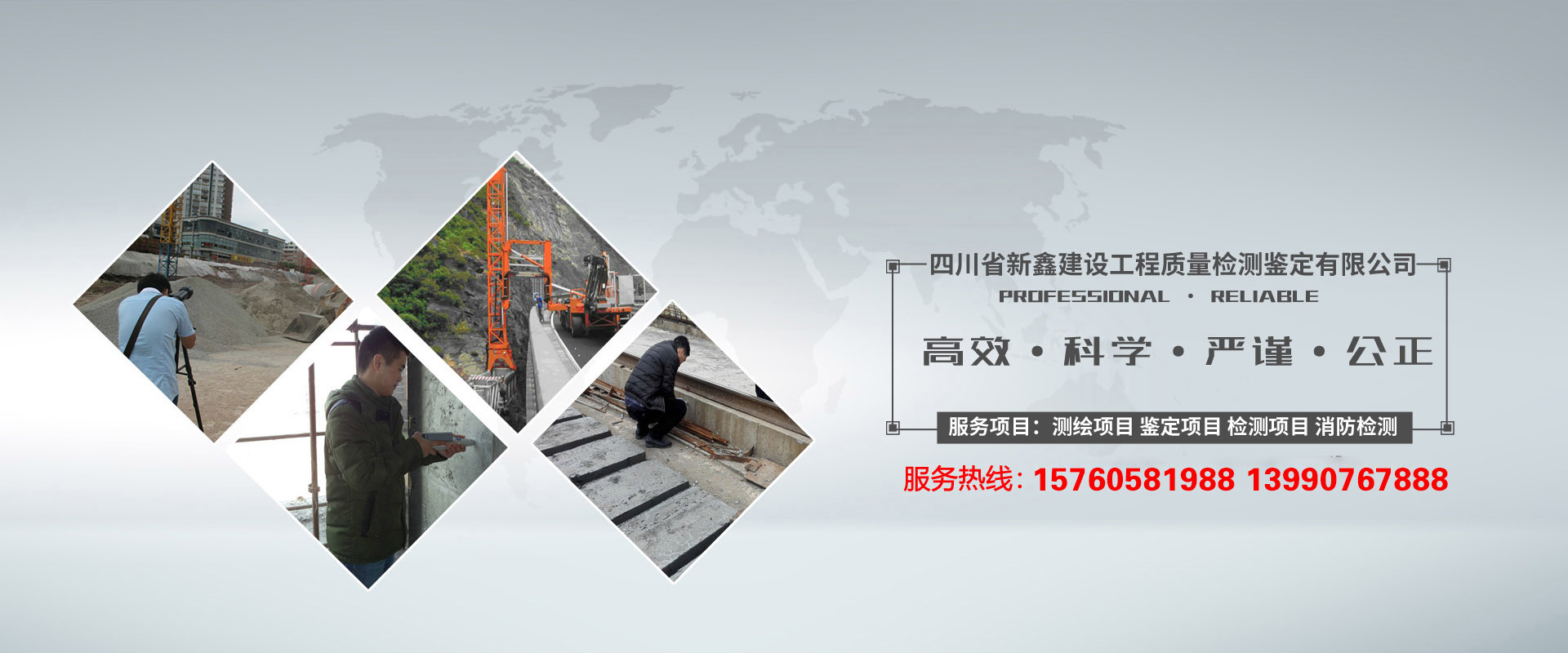 四川省新鑫建設工程質量檢測鑒定有限公司,屬省屬企業,公司位于成都市人民中路三段,進賬實收注冊資金為1000萬元人民幣。該公司是經四川省工商行政管理局批準成立、頒發營業執照并具有建設工程質量檢測、建設工程質量鑒定、工程測量、房產測繪、地籍測繪、白蟻防治、消防設施質量檢測維護保養及建設工程相關檢測鑒定資質,是一支高智能技術性專業機構。公司技術雄厚,人員專業,設備先進,儀器齊全,檢測鑒定準確,測量測繪精細。白蟻防治、建設工程質量、消防工程質量檢測技術過硬,擁有多位業界資深專家及一支工程測量、房產測繪、地籍測繪、工程檢測鑒定的專業技術隊伍。我公司專業技術人員經驗豐富,長期從事建設工程檢測、鑒定、測繪、測量、消防設施質量檢測維護保養和白蟻防治工作。公司現有從業人員50余人,具有本科及以上學歷的20人,高級工程師8人,工程師12人,其中各類專業持證上崗人員32人